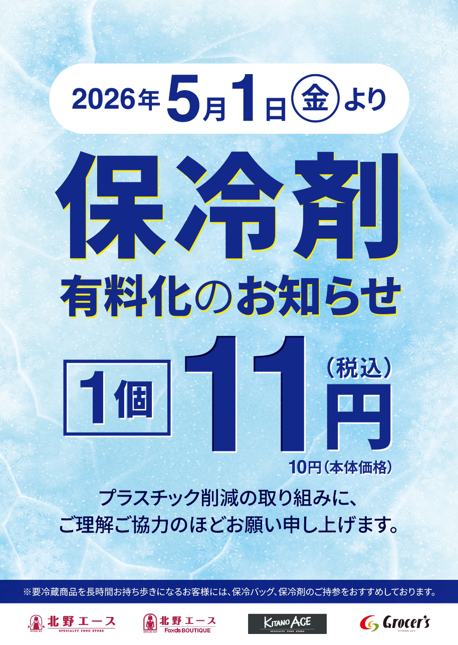 保冷剤有料化に関するお知らせ(一部店舗)
