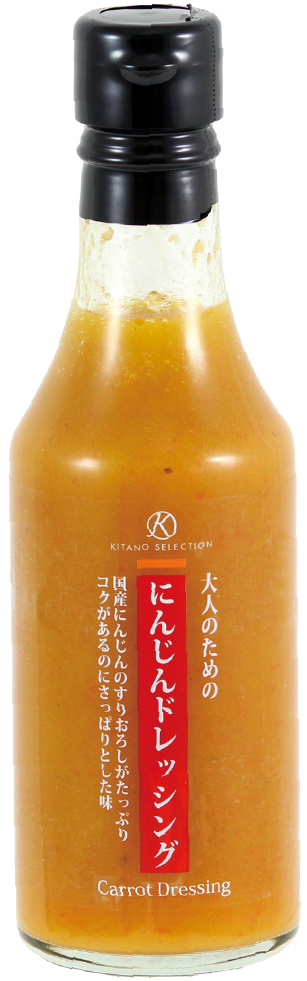 国産にんじんをすりおろし、にんじんの甘み・風味をいかしたドレッシングに仕上げました。かけて・和えて・炒めてと万能なドレッシングです。 -